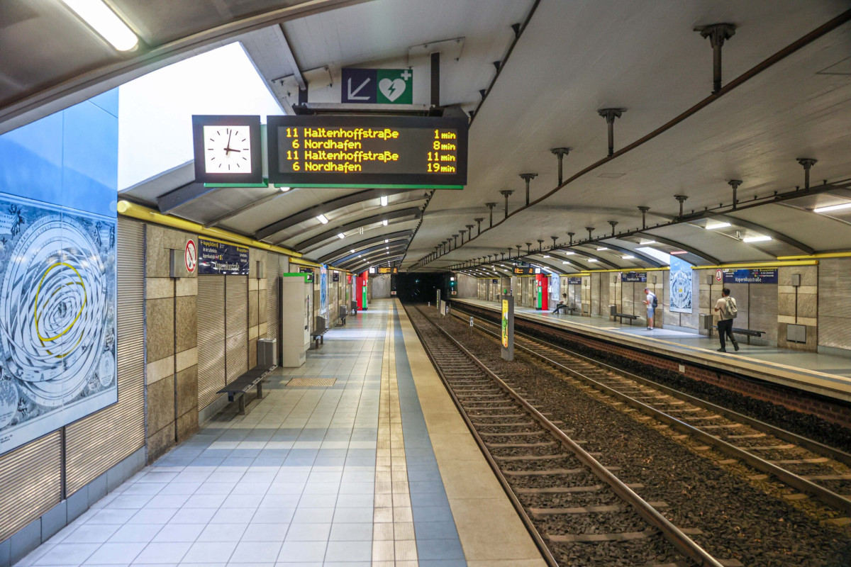 - 103 m lange Seitenhochbahnsteige mit ebenerdigem Zugang (Ausstieg Fahrtrichtung rechts) im Tunnel