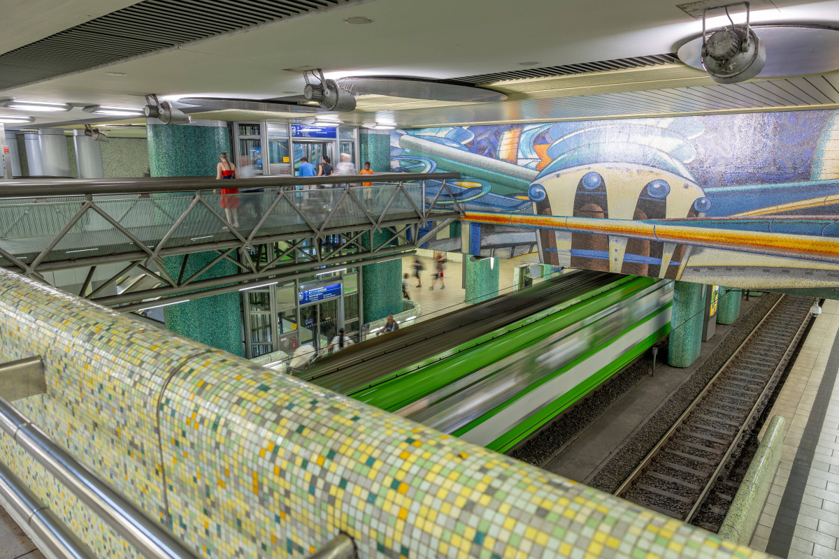 - Jeweils 103 m lange Seitenhochbahnsteige mit ebenerdigem Zugang (Ausstieg Fahrtrichtung rechts) im A-Tunnel sowie im B- und C-Tunnel