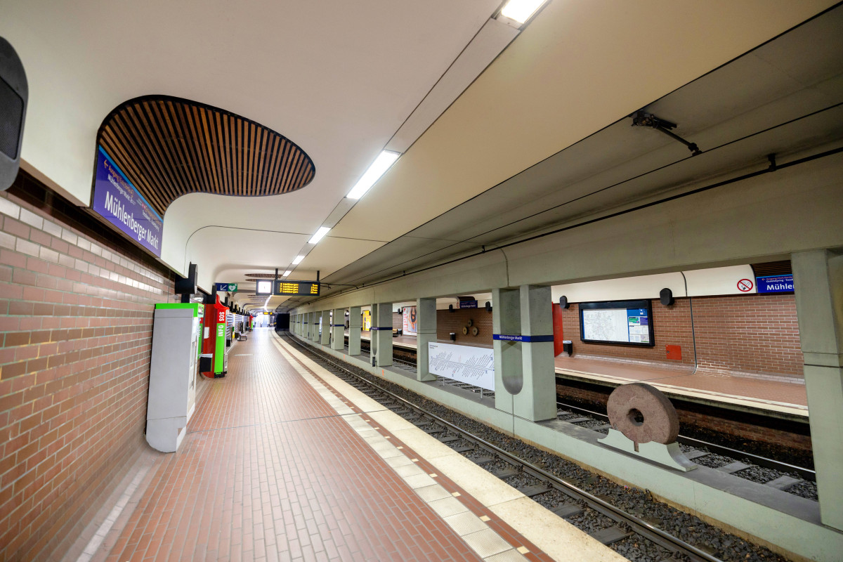 - 103 m lange Seitenhochbahnsteige mit ebenerdigem Zugang (Ausstieg Fahrtrichtung rechts) im Tunnel